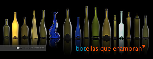 Dedicados a botellas de vidrio burdeos, bordelesas, clarete, frontignan, borgoña, rhode, rielsling, rhin, borgognotta, jerezana, flauta, riesling, renana, rhin y alsaciana para vinos. Botellas de vidrio para espumantes, espumosos, champagne, champañeras, champañas, cava, freezantes, cuveé, mum, licores, espirituosas, licorosas, destilados, licor, bebidas alcohólicas en diferentes tamaños. Envases de vidrio para aceites de oliva, alcúzar, ánforas, growler, botellones. Formas de fantasía (botellas con formas de uva, violín, tambor, gallo, etc).